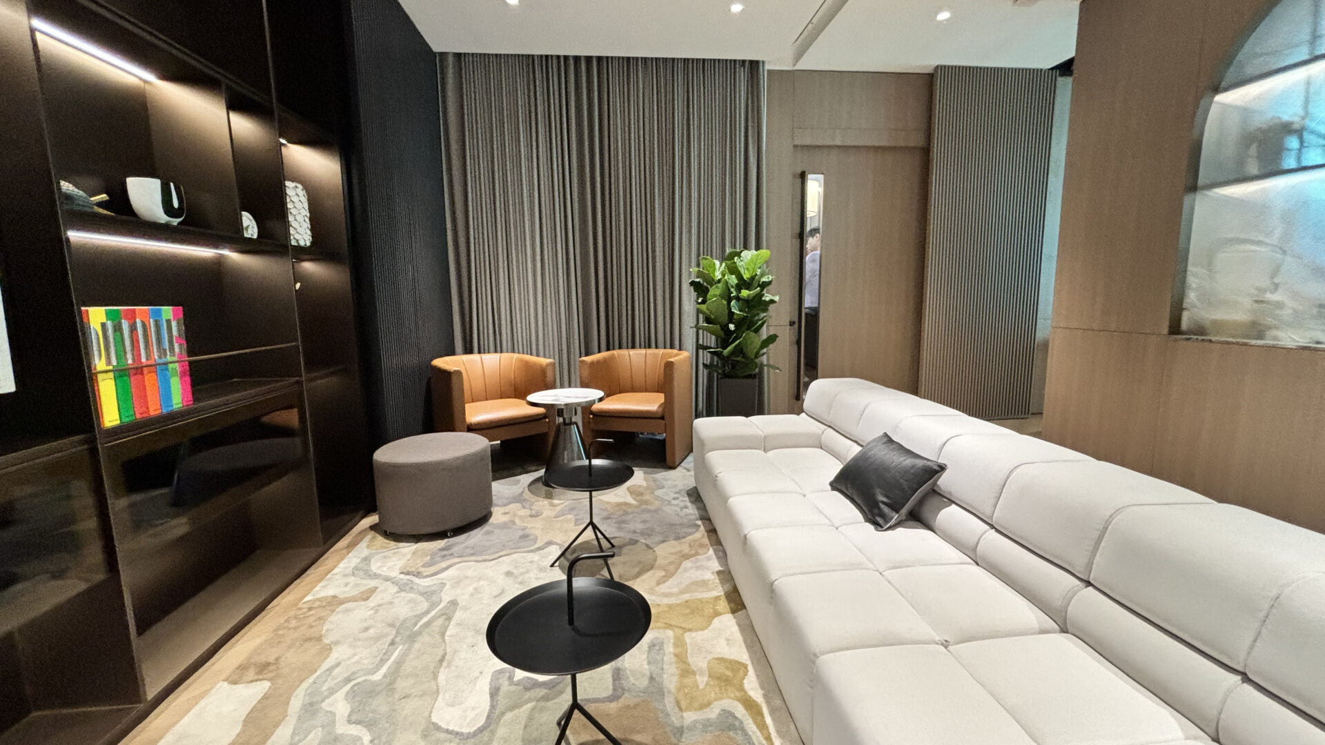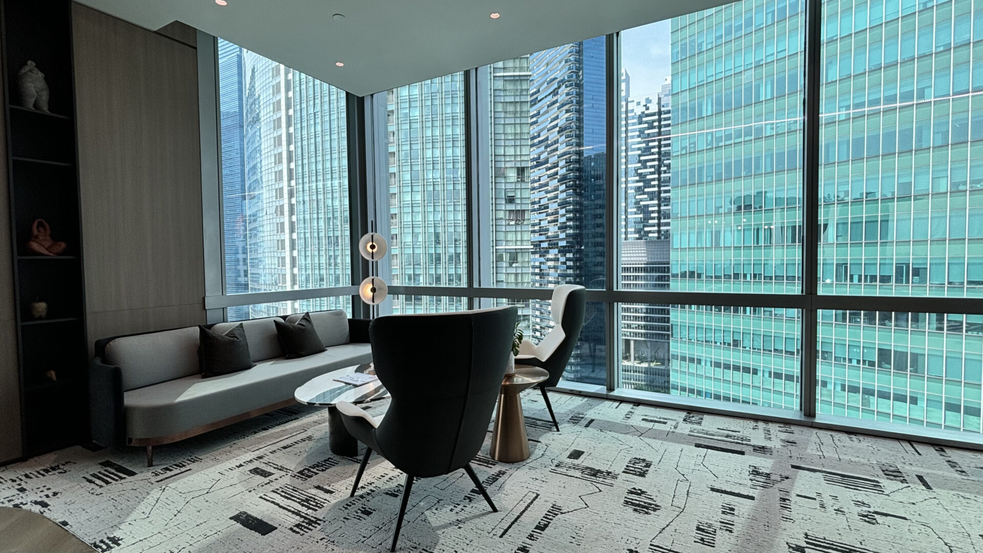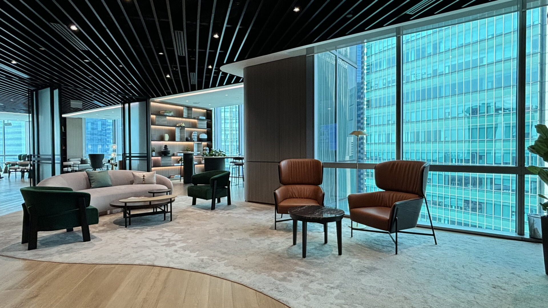 The interior boasts elegant design with a palette of beige and gray, creating a refined environment. Arcc Spaces also features The Drawing Room—an event space with sweeping views of the Marina Bay area, perfect for networking and collaborative opportunities with major financial institutions and global companies.