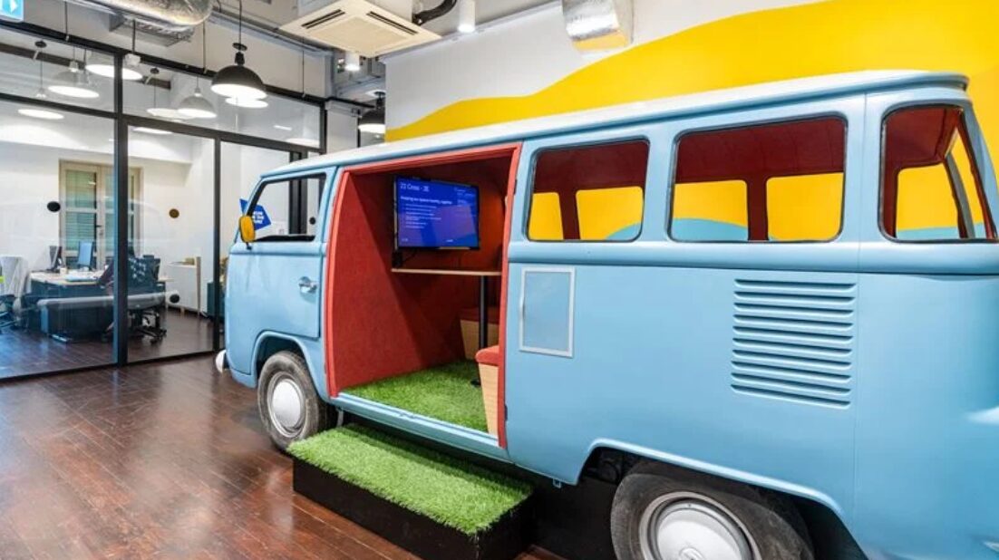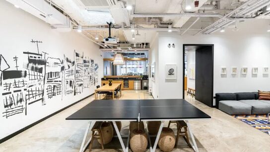 The beautifully designed lounge, featuring stylish decor and a ping pong table, creates a dynamic and engaging environment.