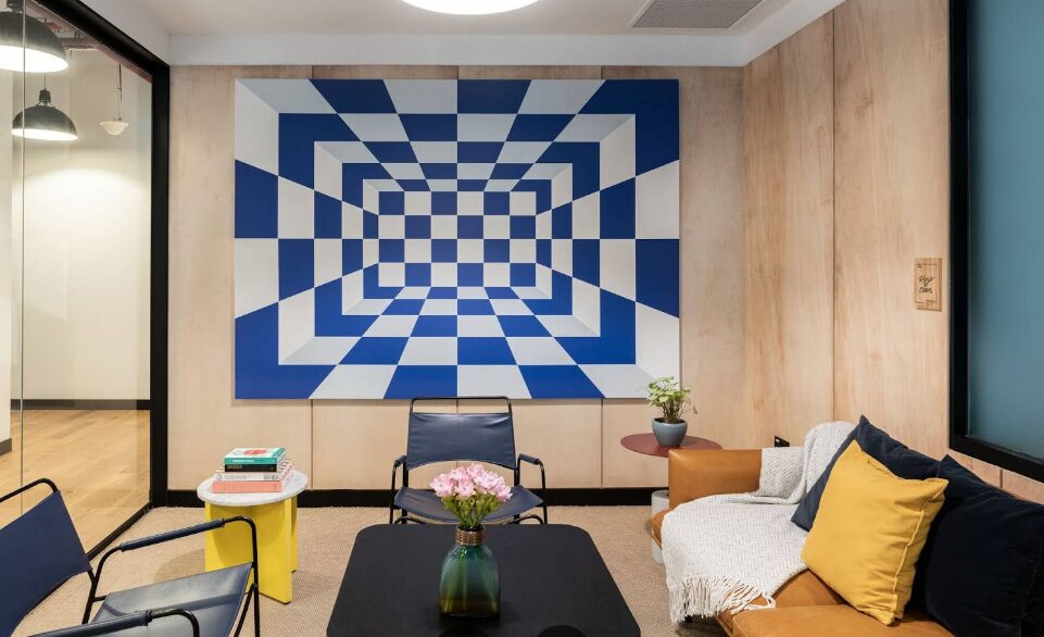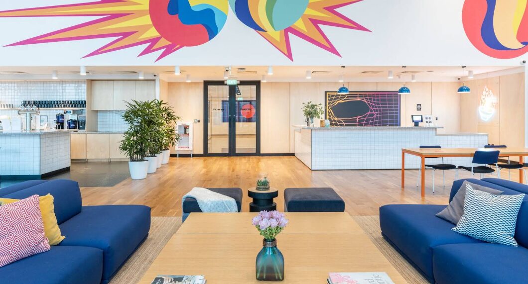With vibrant, colorful offices and lounges, the space fosters a dynamic and efficient work environment.