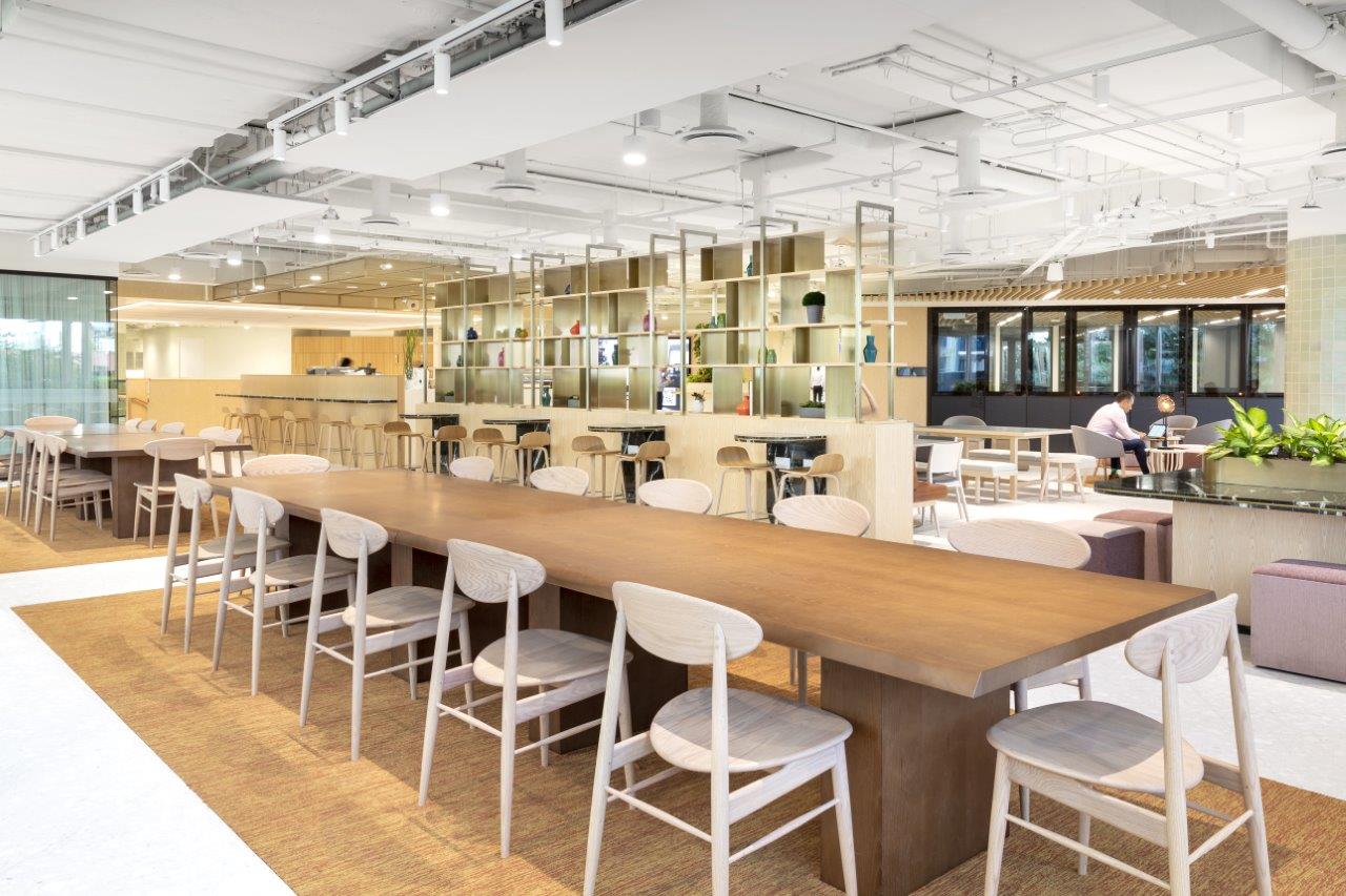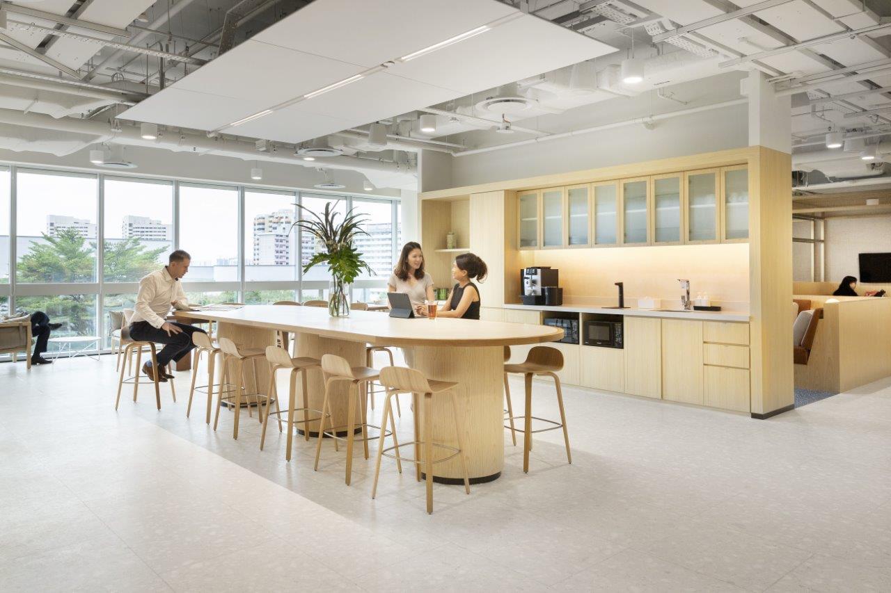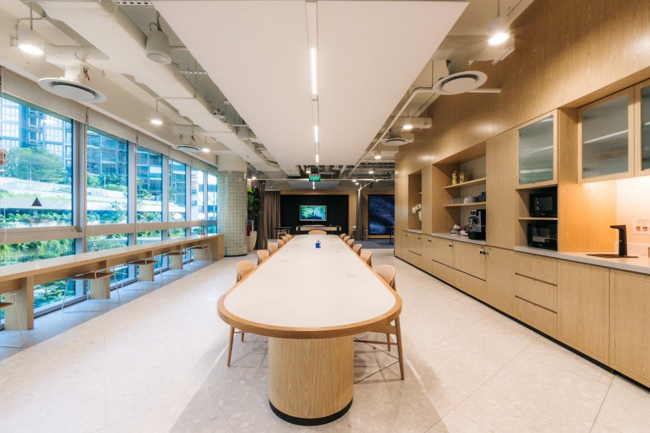 Just a 3-minute walk from Paya Lebar MRT station and seamlessly connected to a shopping mall, the facility ensures easy access and convenience, even on rainy days. The interior is notably cozy and holds the WELL Core and Shell Certification, which evaluates the enhancement of tenant well-being and productivity. Designed for larger teams of 50-200 people, the space also hosts regular wellness events such as yoga and boxing exclusively for private office users.