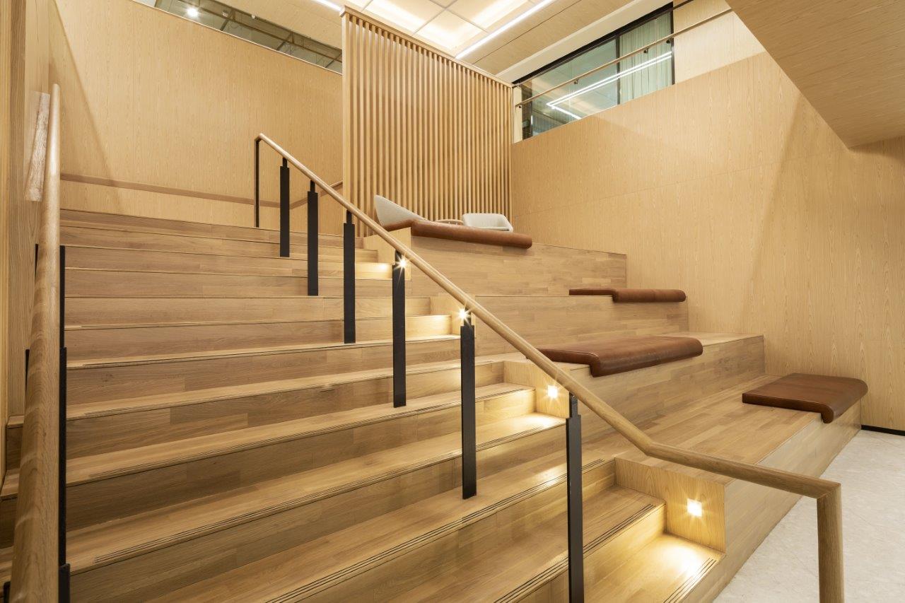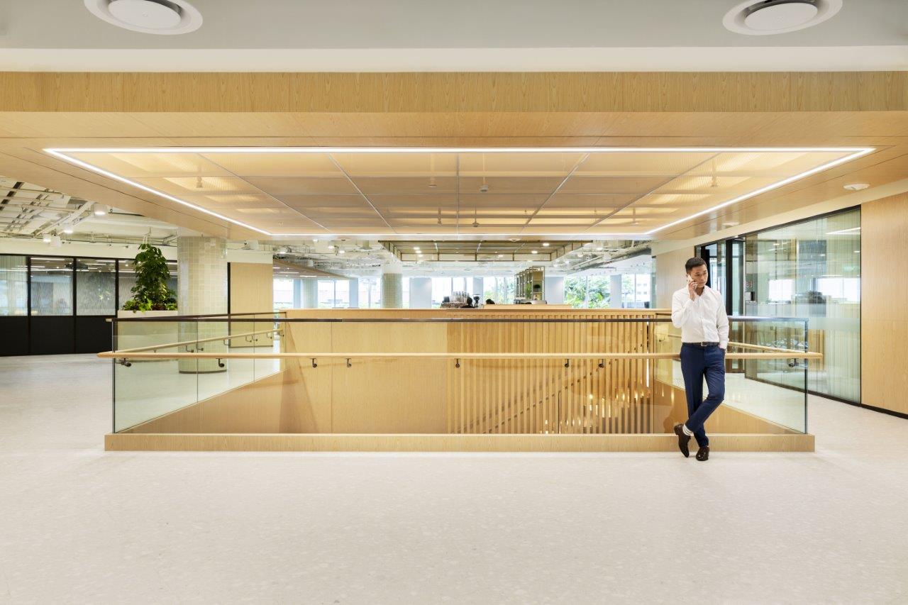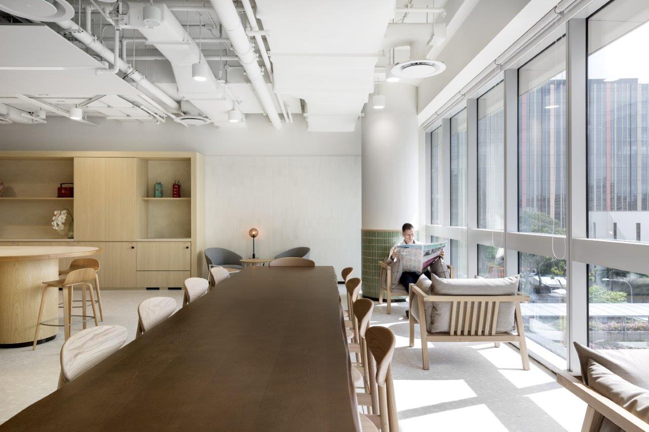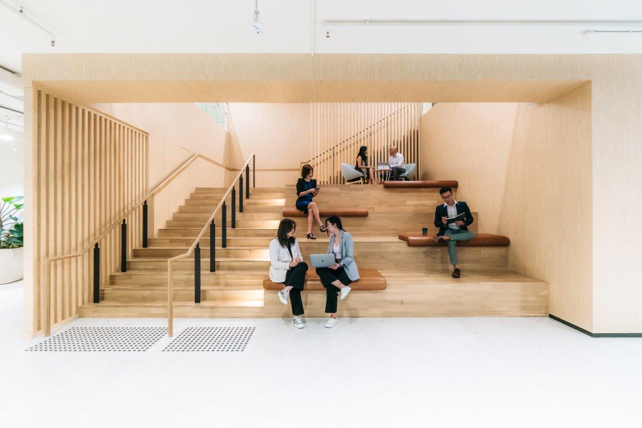 Just a 3-minute walk from Paya Lebar MRT station and seamlessly connected to a shopping mall, the facility ensures easy access and convenience, even on rainy days. The interior is notably cozy and holds the WELL Core and Shell Certification, which evaluates the enhancement of tenant well-being and productivity. Designed for larger teams of 50-200 people, the space also hosts regular wellness events such as yoga and boxing exclusively for private office users.