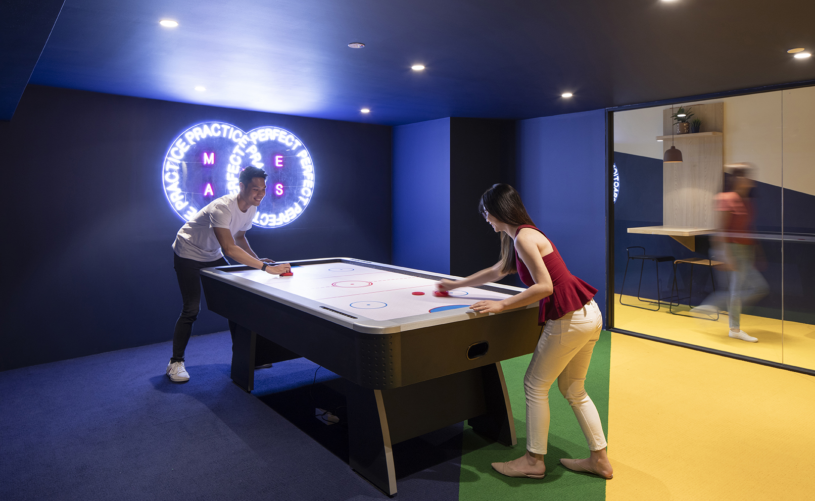 Beyond its modern interiors and flexible office options, this location stands out for its playful touches — think basketball machines and a table tennis setup — making it a great space for team bonding and a refreshing break from work.