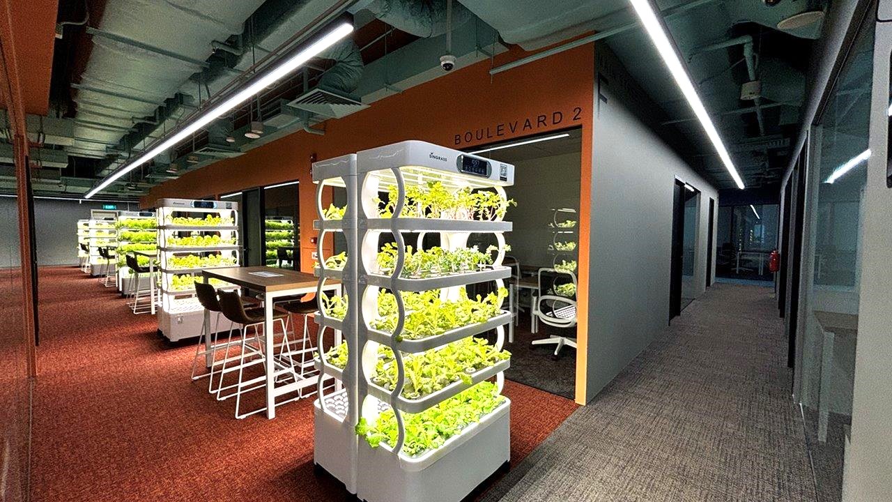 True to the O2Work name, the space is equipped with multiple Indoor Smart Eco Systems that grow fresh vegetables, contributing to high-quality oxygen and creating a visually refreshing environment. With a shopping mall and the iconic hawker center “Lau Pa Sat” just a short walk away, you’ll have plenty of options for lunch and more.