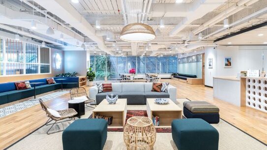 Set atop Funan Mall, WeWork at 109 North Bridge Road occupies the top two floors with spacious, art‑filled lounges, vibrant shared areas, and sleek private offices — mingling workspace and lifestyle seamlessly.